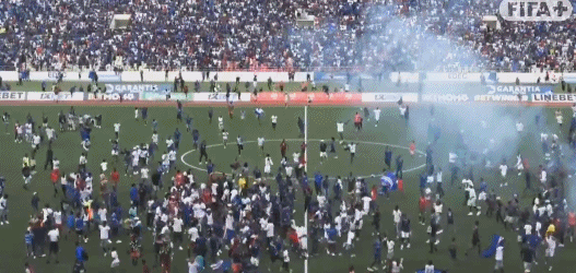上个月结束的一场世预赛,佛得角主场1-0爆冷击败喀麦隆,当时为喀麦隆镇守球门的是门将奥纳纳,目送佛得角打进全场唯一进球。比赛结束之后,现场的佛得角球迷陷入了疯狂,直接冲进球场狂欢庆祝,场面太震撼了。